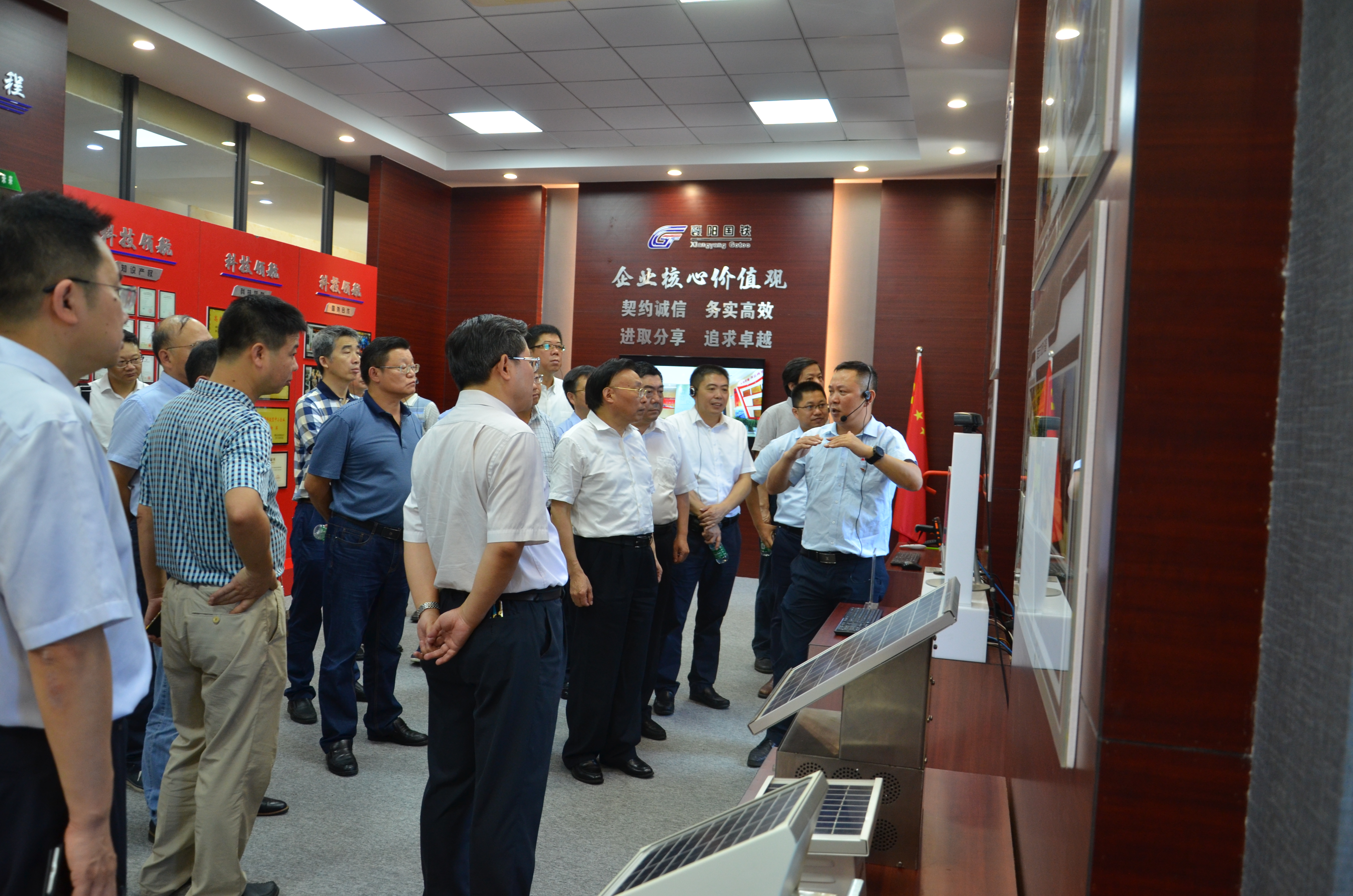 張清杰校長(zhǎng)、李德璋副市長(zhǎng)等一行首先參觀了公司展廳,曾建勇董事長(zhǎng)介紹了公司“產(chǎn)品創(chuàng)新”、“國(guó)際合作”、“企業(yè)文化”等方面的情況。張清杰校長(zhǎng)對(duì)我公司自主研發(fā)的“軌道交通信息化管理系統(tǒng)”給予了高度的贊賞,李德璋副市長(zhǎng)稱贊襄陽國(guó)鐵是一家勇于創(chuàng)新的優(yōu)秀企業(yè),鼓勵(lì)公司繼續(xù)加強(qiáng)技術(shù)儲(chǔ)備,帶動(dòng)全市軌道交通產(chǎn)業(yè)的發(fā)展。
