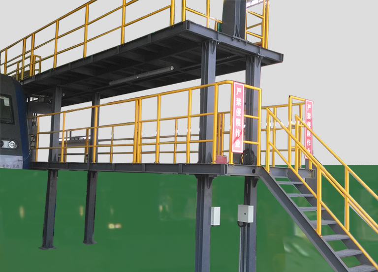 三層整備作業(yè)平臺適用于各型機(jī)車檢修整備作業(yè),方便檢修整備作業(yè)人員對機(jī)車車上部件的檢查、檢測、清潔保養(yǎng),保證檢修整備人員上下機(jī)車的安全。